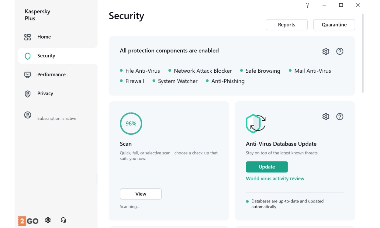 The Anti-Phishing feature protects you from phishing attacks and identity theft. Two-way firewall provides additional security and will protect your device from unauthorized access. Network Attack Blocker identifies suspicious activity and immediately blocks attacks, preventing cybercriminals from threatening your security or affecting your computer's performance.