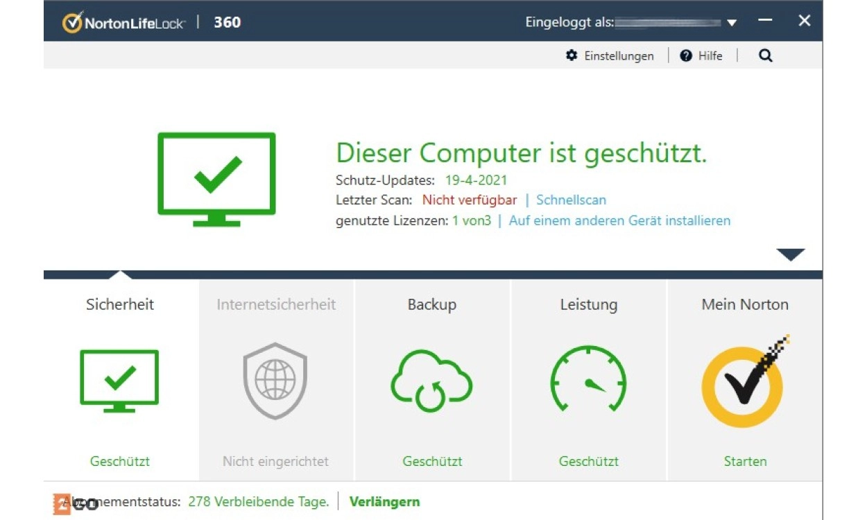 Norton 360 wird automatisch jährlich verlängert. Der angezeigte Preis gilt für das erste Jahr. Im nächsten Jahr zahlst du den regulären Preis. Dank der automatischen Verlängerung von Norton bist du immer garantierte beste Sicherheit und musst dir keine Sorgen um deinen Schutz machen. Garantiert und immer Zugang zur neuesten Version von Norton! Bei der Aktivierung wird Norton dich bitten, Zahlungsdetails einzugeben. Das könnte eine Kontonummer, Kreditkarte oder PayPal-Konto sein.