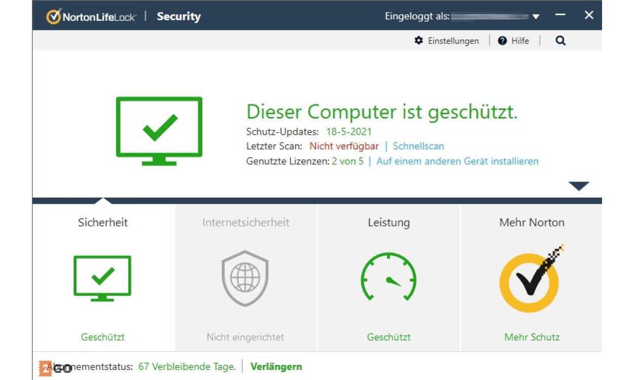Mit diesem Jahresabonnement können Sie sich auf den besten Schutz für ein ganzes Jahr verlassen. Norton Security Standard ist ein sehr umfangreiches Paket und bietet Ihnen Folgendes: a Firewall, sicheres Online-Banking, Schutz für mobile Geräte (Tablet, Android-Smartphones, iPhones und Tablets), Schutz vor Ransomware, elterliche Kontrollen und vieles mehr. Norton Security Standard punktet in Bezug auf Benutzerfreundlichkeit. Sie müssen kein Administrator sein, um den Überblick über My Norton zu verstehen. Alles ist klar und es wird nie kompliziert. Sie können sehr schnell sehen, welche Computer die Lizenz nutzen und wie lange Ihr Abonnement noch läuft.