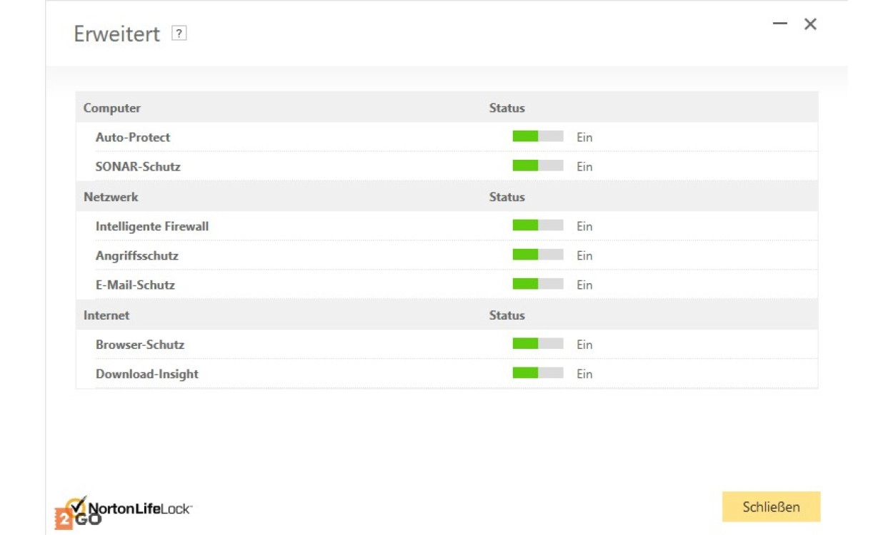 Beim Direktkauf versichern wir Ihnen den niedrigsten Preis. In Zusammenarbeit mit Norton bietet 2GO Software auch Folgendes an: