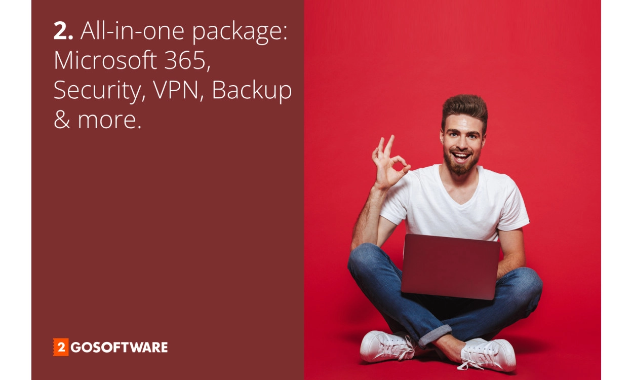 The 2GO Software All-in-one Personal Bundle is the ultimate package for individuals and digital users who want to work and browse securely — anytime, anywhere. We’ve carefully curated this bundle to take the guesswork out of choosing software. With so many tools available, it can be hard to know what works well together — but we’ve already figured that out for you. Every product is selected to complete the others: Productivity, security, privacy, and backup. Just activate and get started directly — or take advantage of the included expert installation service within 4 hours to get everything up and running, hassle-free.