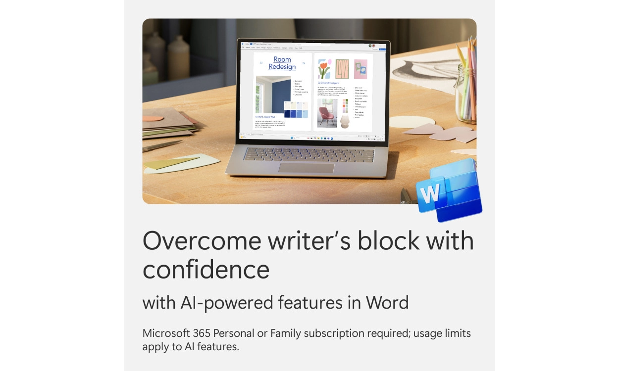 Copilot in Microsoft 365 makes your work easier. Perfect for tasks like writing, summarizing, and assistance with using Microsoft 365 programs. More convenience, less time wasted! You can now also use Copilot with Microsoft 365 Personal and Family!