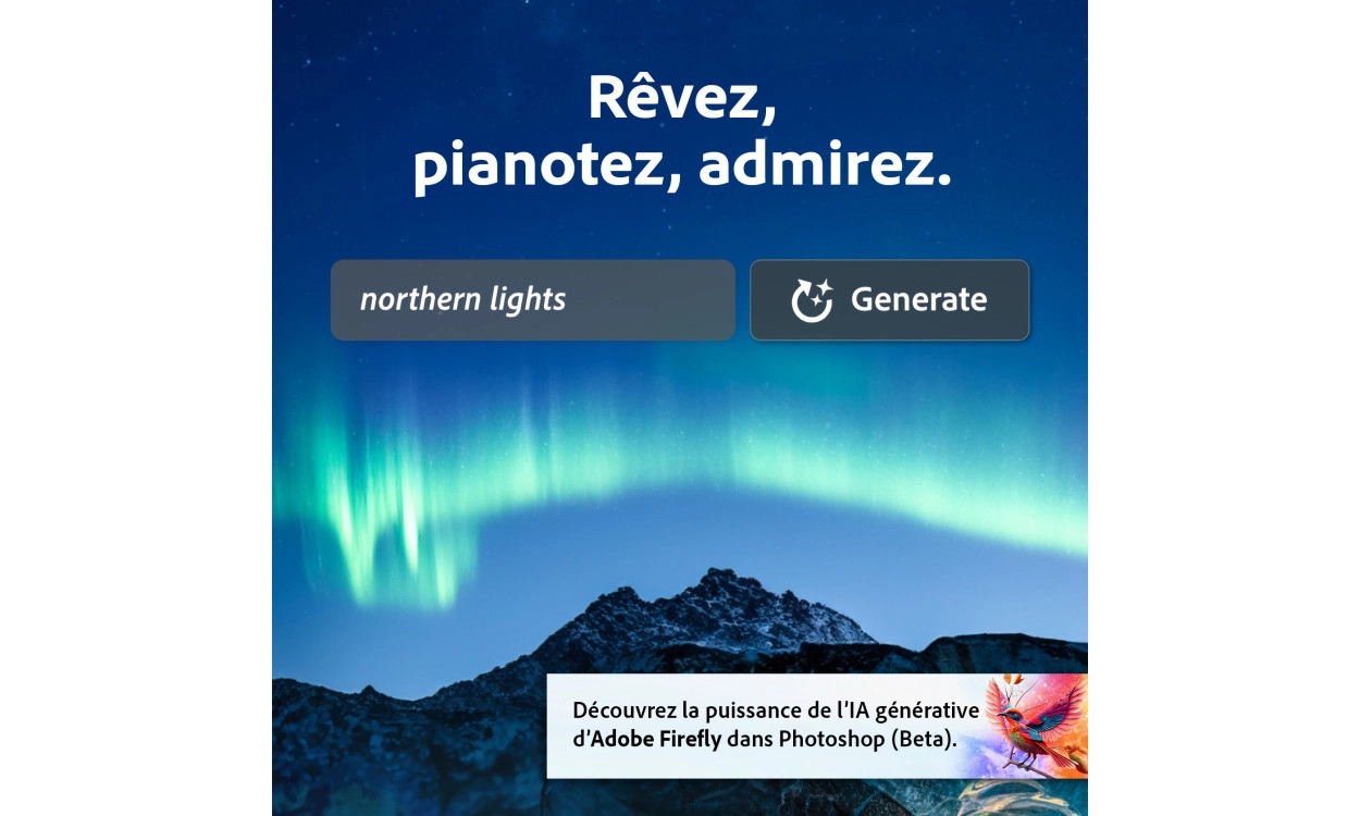 Découvre l'avenir de Photoshop avec Generative Fill. Qu'il s'agisse de générer des idées créatives ou d'effectuer des modifications et des perfectionnements complexes, avec Generative Fill, tu peux rapidement concrétiser ta vision tout en ayant un contrôle total sur chaque création.
