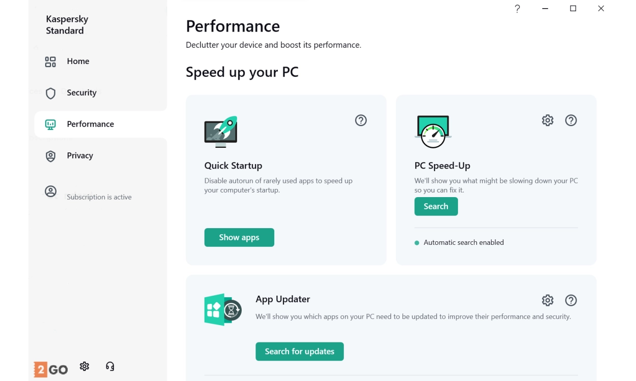 Updater for software and apps: ensures that software updates are installed to keep your computer running fast and smoothly and always using the latest security.