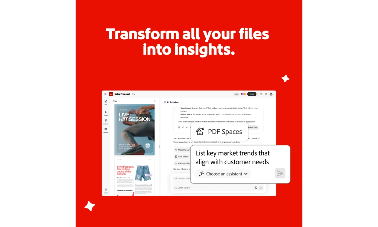 De Acrobat AI Assistant helpt je sneller werken door documenten te analyseren en samen te vatten. Stel vragen over je PDF’s, genereer nieuwe ideeën en ontvang suggesties voor vervolgstappen. Dankzij vooraf gebouwde of aanpasbare assistenten haal je direct waardevolle inzichten uit lange of complexe documenten, zonder alles handmatig door te nemen.
