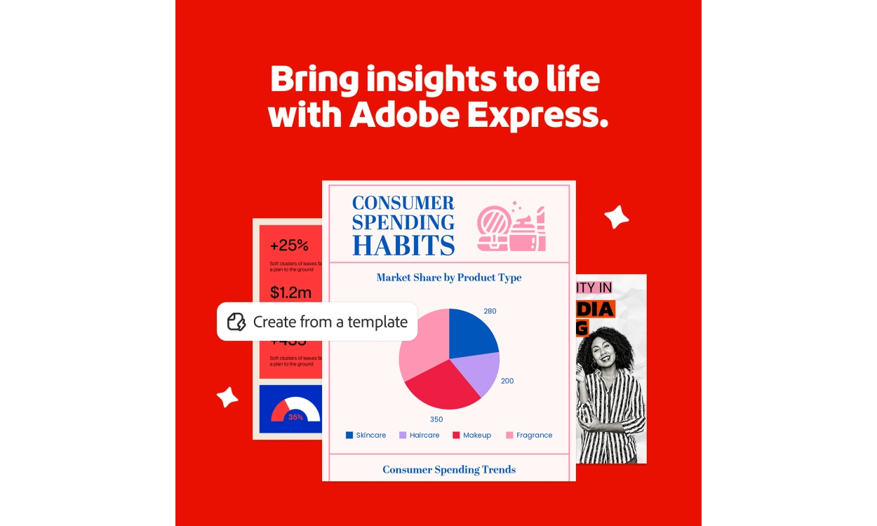 Met Adobe Express Premium maak je eenvoudig professionele ontwerpen, zonder ontwerpkennis. Kies uit duizenden kant-en-klare sjablonen en gebruik slimme AI-tools om in enkele minuten social media posts, flyers, presentaties, logo’s of video’s te creëren. Dankzij cloudopslag en apps voor desktop, web en mobiel werk je altijd en overal verder aan je ontwerpen en deel je deze eenvoudig met anderen.