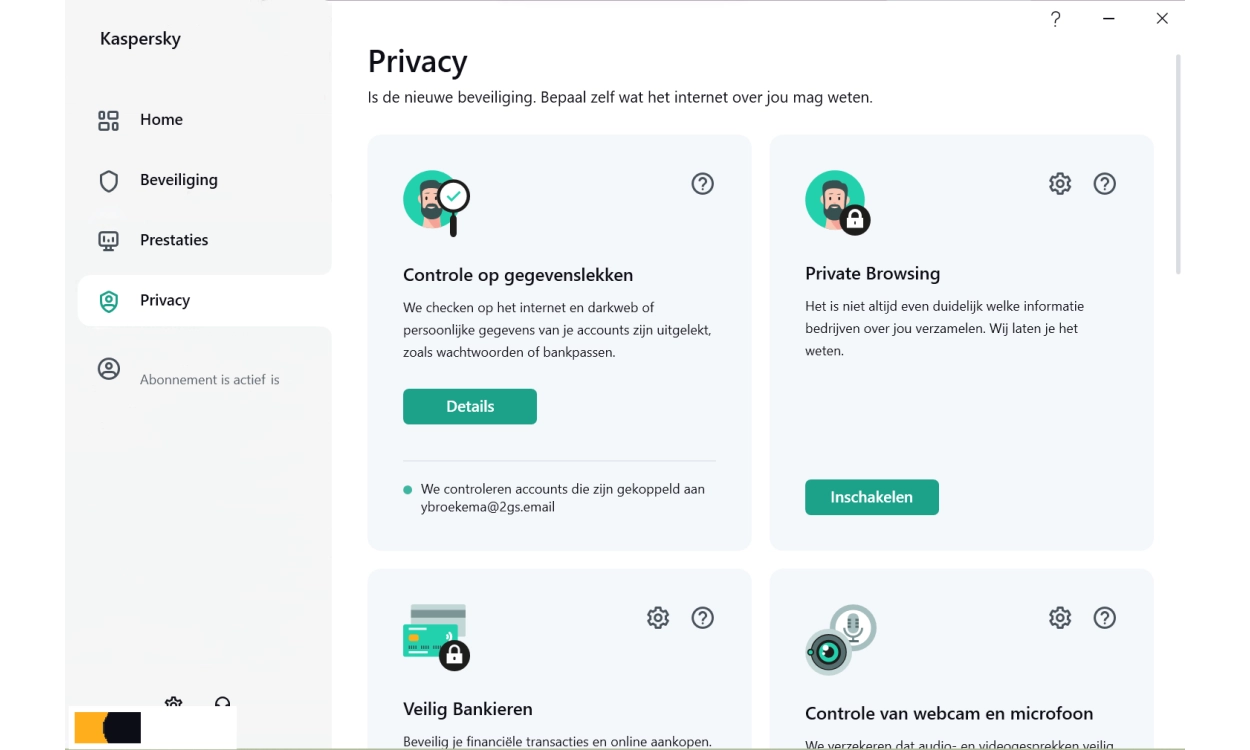 Met de slimme browsertools blokkeer je ongewenste online tracking en hinderlijke advertenties. Ook voorkom je dat cybercriminelen toegang krijgen tot je randapparatuur, zoals je webcam of microfoon. Daarnaast zorgt Kaspersky ervoor dat je online activiteiten – van surfen tot het gebruik van apps – worden beschermd tegen phishing en andere digitale bedreigingen.