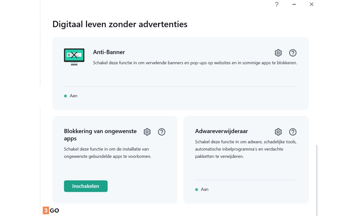 Advertentieblokker: Voorkomt irritante websitebanners en eventueel schadelijke advertenties op computer. Als je toch advertenties van bepaalde websites wilt zien, kun je ze toevoegen aan je favorieten.