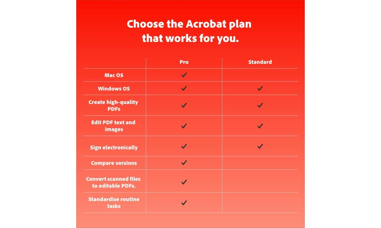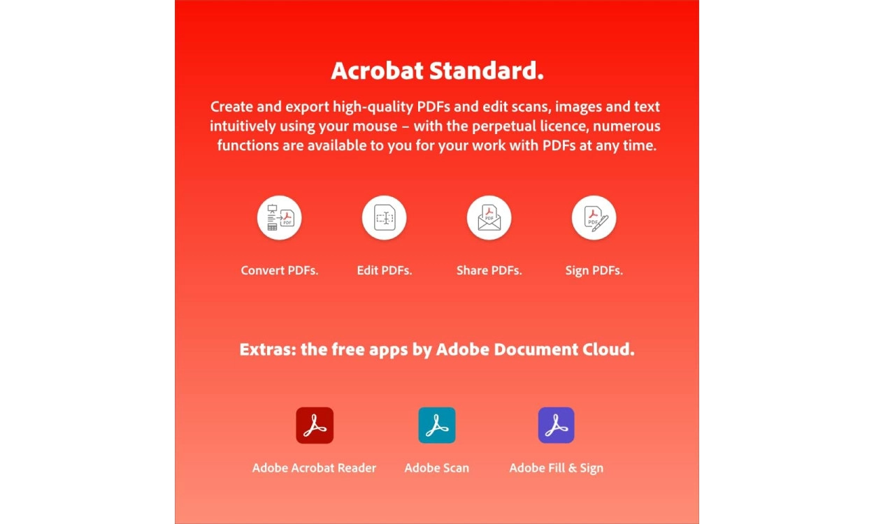 - Alles-in-één PDF-oplossing: Bewerk, onderteken en beveilig PDF’s met Adobe Acrobat Standard.