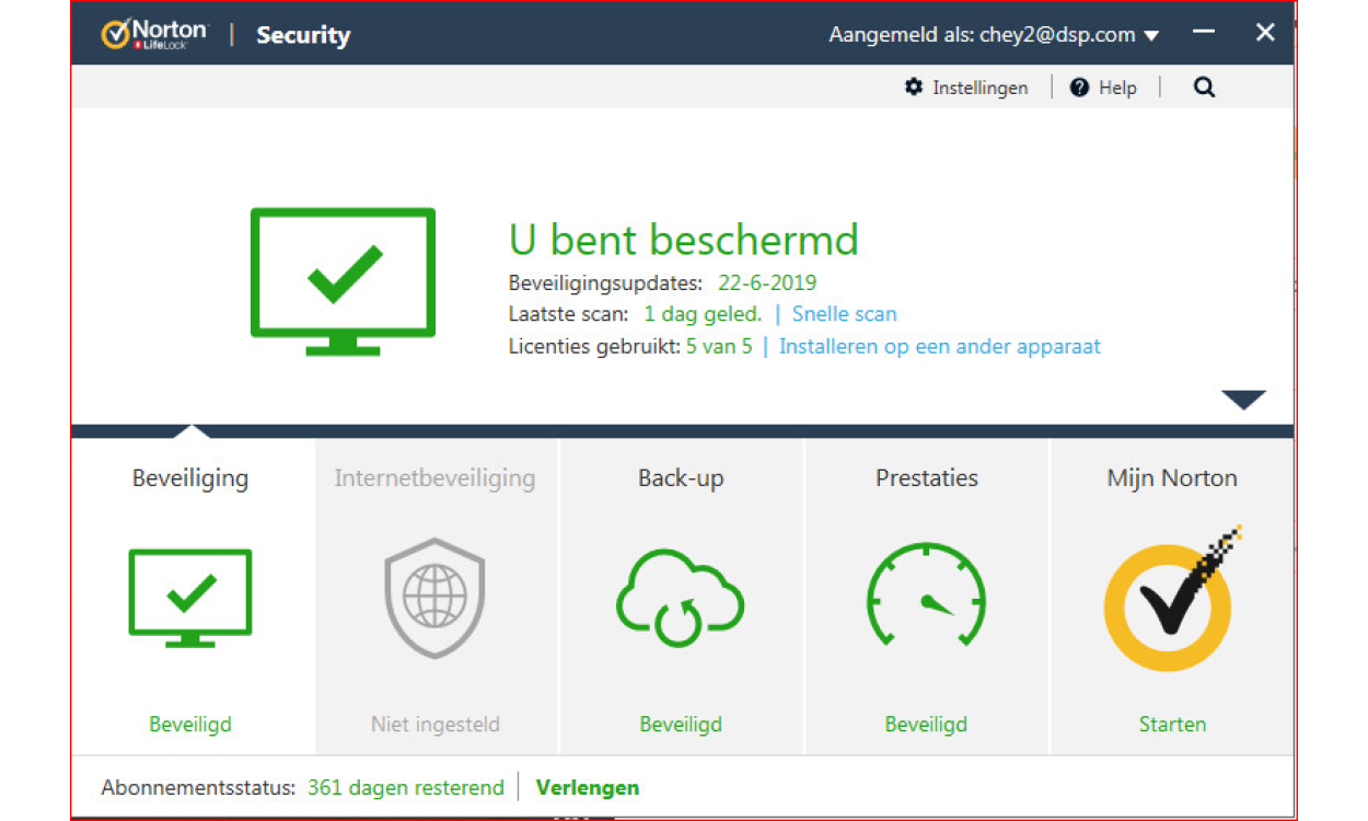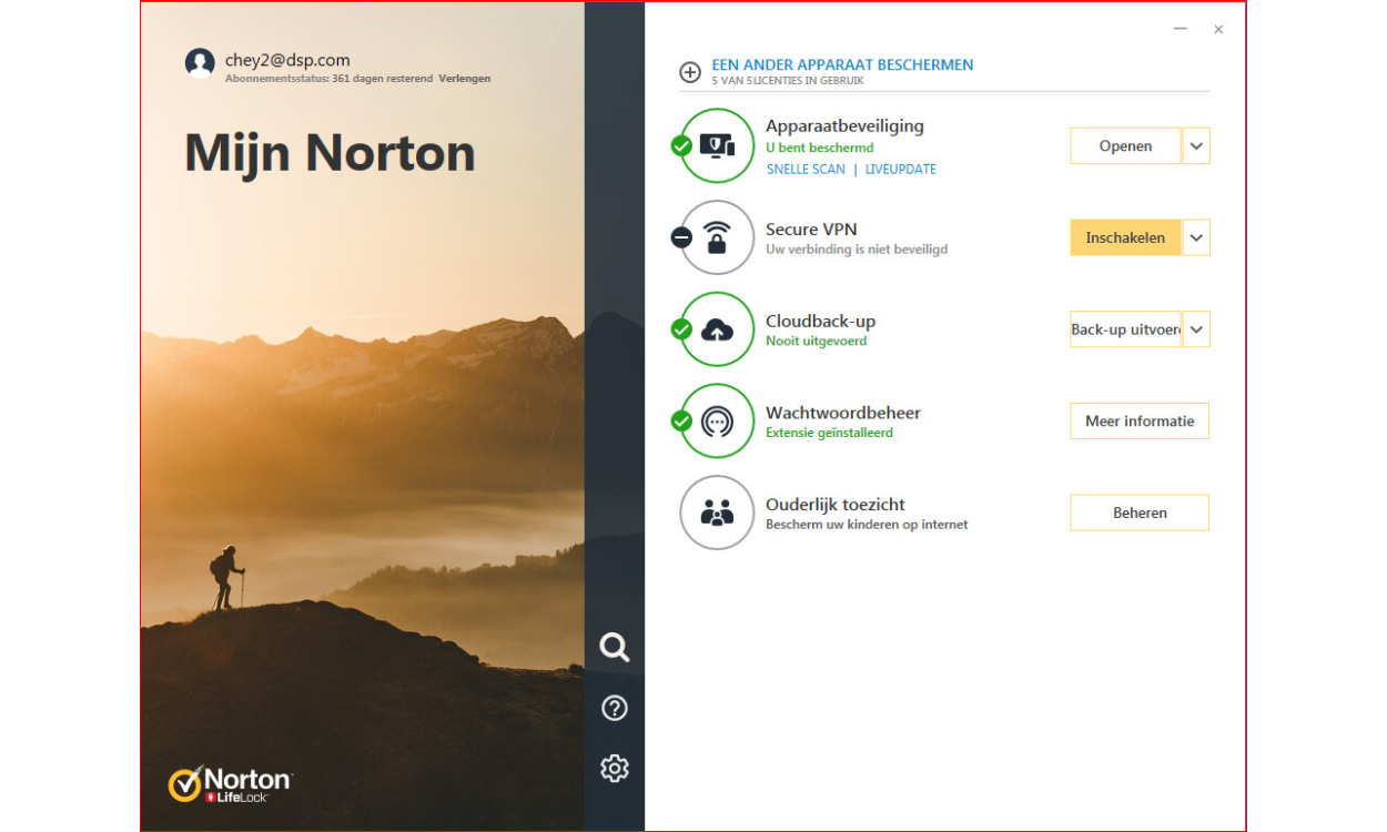 Norton 360 wordt jaarlijks automatisch verlengd. De getoonde prijs geldt voor het eerste jaar. Volgend jaar betaal je de normale prijs. Doordat Norton automatisch verlengen inschakelt, ben je altijd verzekerd van de beste bescherming en hoef je je geen zorgen te maken over je veiligheid. Gegarandeerd en altijd de beschikking over de nieuwste uitvoering van Norton! Tijdens het activeren zal Norton je verplichten om betaalgegevens in te voeren. Dit kan een bankrekeningnummer, een creditcard of PayPal account zijn.